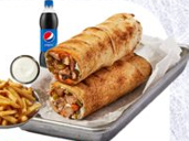 Grilled chicken, coleslaw, fries, pickles with garlic cream & ketchup in arabic breadserved with: 1x Fries, 1x garlic dip or chili dip, 1x pepsi 500ml or fruta jucie